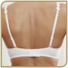 5. Mittelsteg – liegt nicht an Der vordere Mittelsteg hat keinen Kontakt zum Brustbein. Der BH soll auf dem Brustbein anliegen. Das Foto rechts zeigt, wie der BH richtig sitzt. |