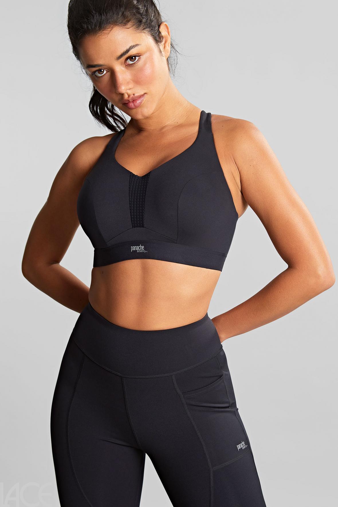 Panache Sport bietet Sport-BHs, die durch bereite Rückenteile und silikonbeschichtete Unterbrustbänder einen optimalen Halt garantieren. Für ein angenehmes Tragegefühl sorgen gepolsterte Einlagen und breite Schulterträger, während die inneren Cups nahtlos sind und somit ein Scheuern auf der Haut reduzieren.