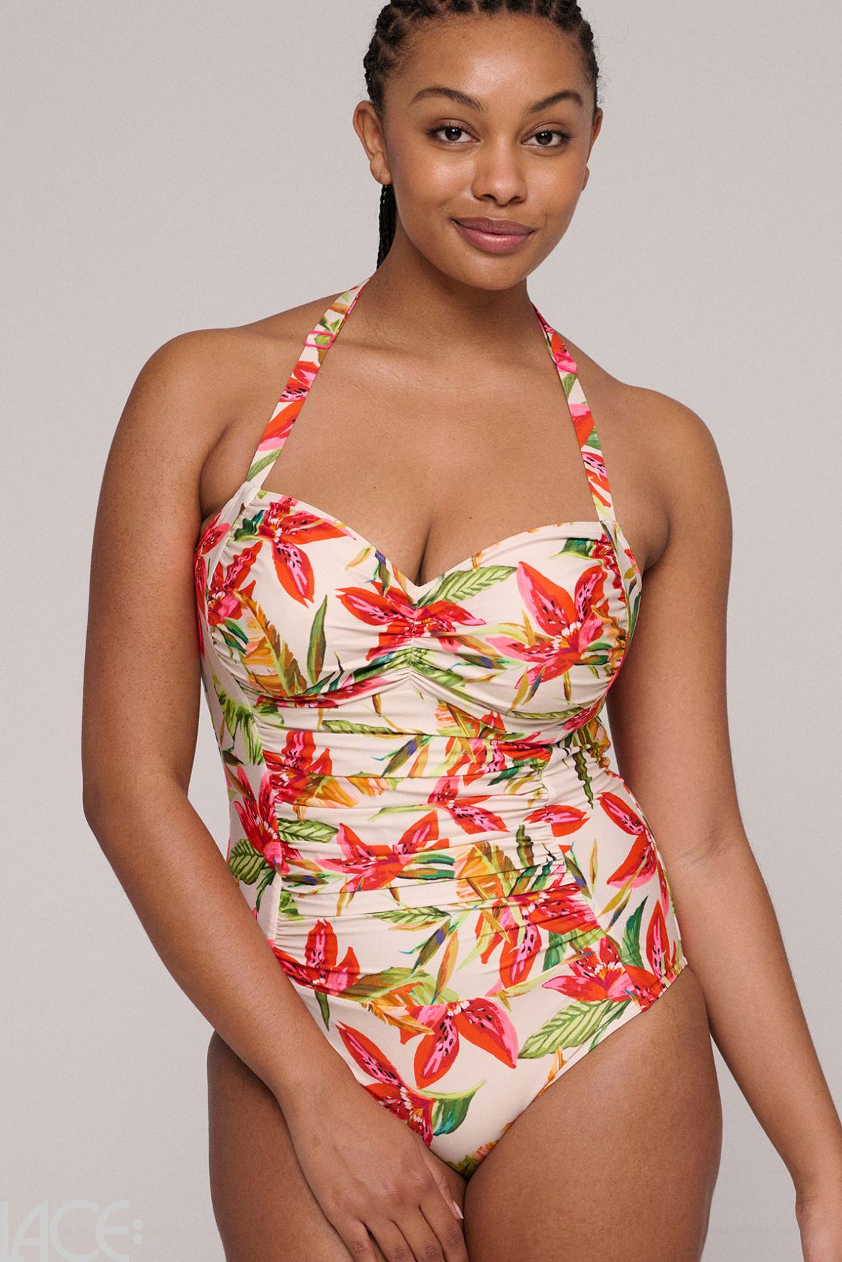 Badeanzug, Badeanzug - Shapewear, Badeanzug - Halterneck, Badeanzug - nicht wattiert, Badeanzug - mit Bügel, Muster - Tropical