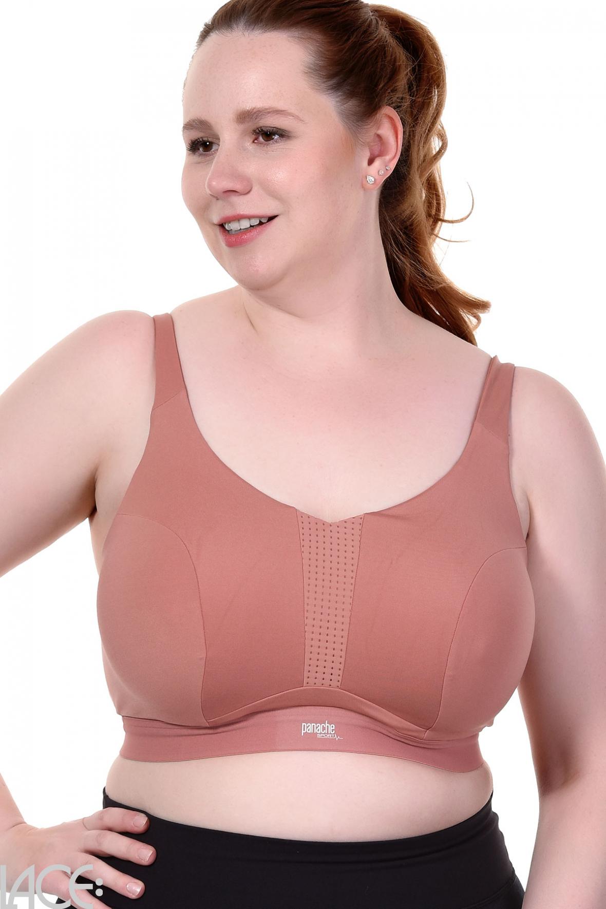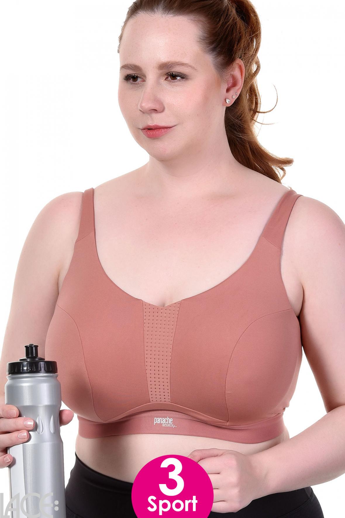 Panache Sport bietet Sport-BHs, die durch bereite Rückenteile und silikonbeschichtete Unterbrustbänder einen optimalen Halt garantieren. Für ein angenehmes Tragegefühl sorgen gepolsterte Einlagen und breite Schulterträger, während die inneren Cups nahtlos sind und somit ein Scheuern auf der Haut reduzieren.