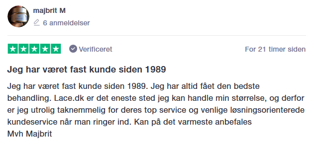 Spørgsmål? E-Mail: service@lace.dk Telefon: 70 21 10 84 |