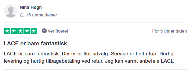 Spørgsmål? E-Mail: service@lace.dk Telefon: 70 21 10 84 |