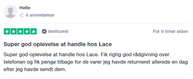 Spørgsmål? E-Mail: service@lace.dk Telefon: 70 21 10 84 |