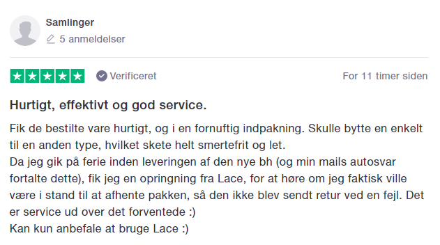 Spørgsmål? E-Mail: service@lace.dk Telefon: 70 21 10 84 |