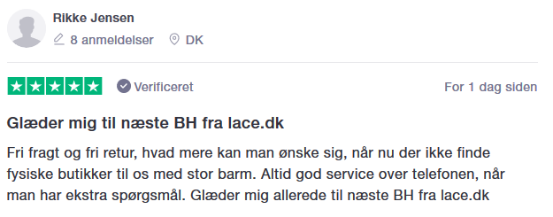 Spørgsmål? E-Mail: service@lace.dk Telefon: 70 21 10 84 |