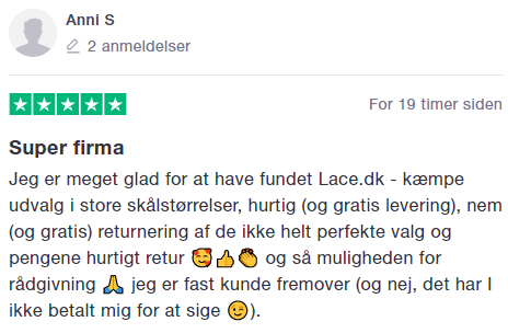 Spørgsmål? E-Mail: service@lace.dk Telefon: 70 21 10 84 |