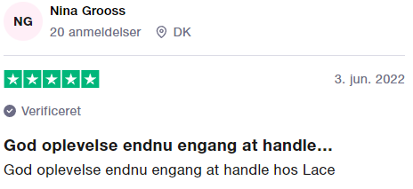 Spørgsmål? E-Mail: service@lace.dk Telefon: 70 21 10 84 |